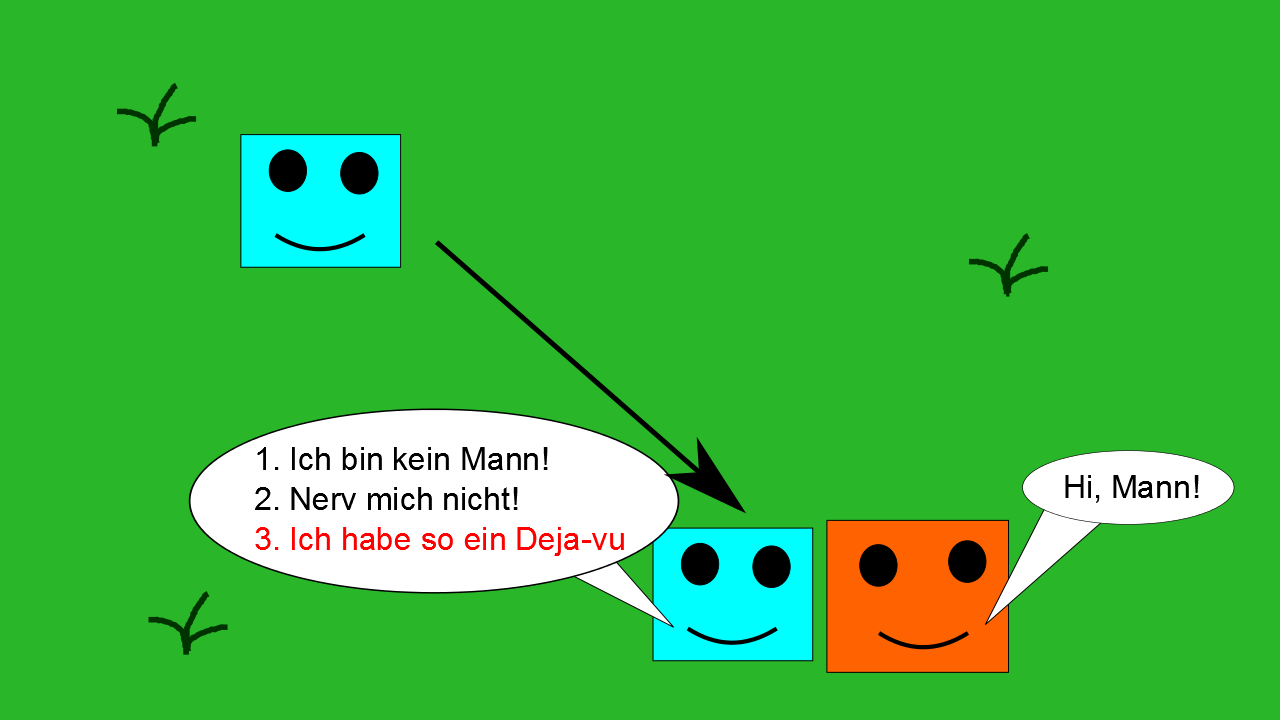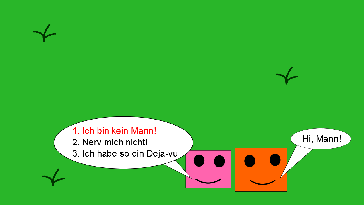 | Wählt ihr die erste Antwort und behauptet ihr seid kein Mann, wird aus euren blauen Männchen ein rosa Weibchen. |