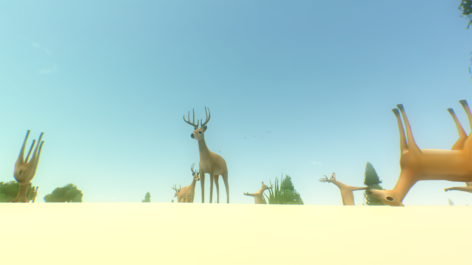 Das erste, was bei „Everything“ ins Auge sticht, sind die absurden Fortbewegungen der Tiere. Statt auf allen Vieren zu laufen, überschlagen sich einfach ihre kompletten Körper. „Rollen“ quasi vorwärts. Sicher war es hier zu schwierig, jedem einzelnen Tier eine Animation zu geben, womöglich war es aber auch Absicht. In jedem Fall gibt es dem Spiel ein einzigartiges Äußeres und war für mich der Auslöser, mir das Spiel näher anzusehen.